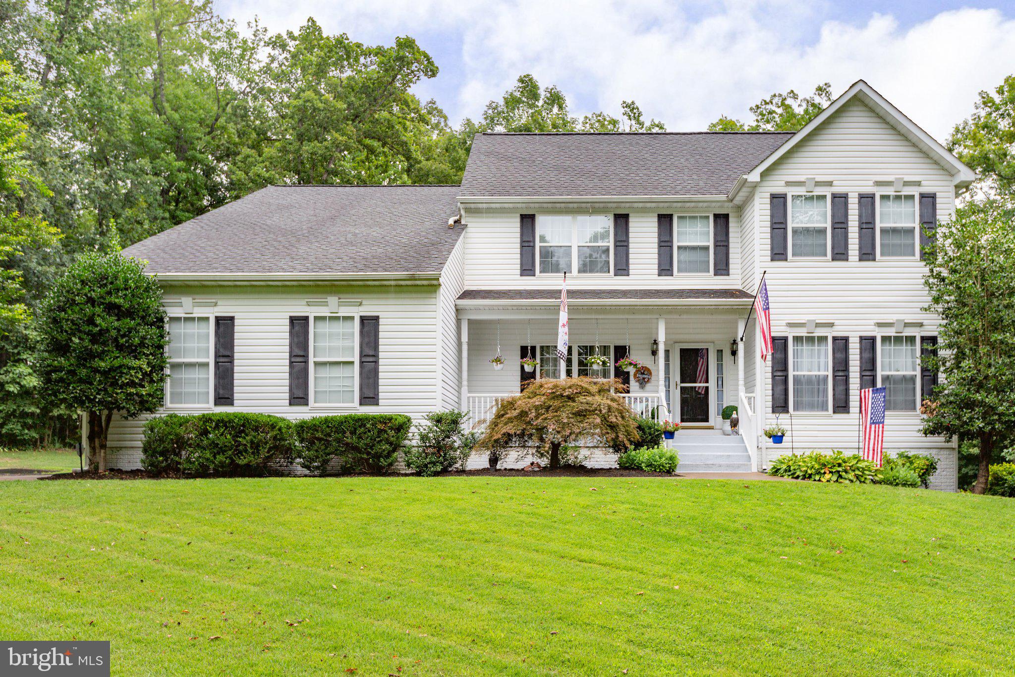 Unbelievable convenience... a 2.5-acre estate... and showing like-new here in 2024? Yes, it's all at 9503 Trentham Trail! This stately residence includes five bedrooms, three full baths, one half bath and more than 4,500 square feet of finished living space. The estate sits in the roomy and secluded community of The Trails, which has a low annual HOA fee. The home is tucked at the end of a cul-de-sac with a long asphalt driveway leading to the three-car, double door garage with newer doors (updated in 2022). There are lush trees out front as well as along the driveway (note the crepe myrtles!), making for a lovely privacy buffer. There is a water/hose connection down by the mailbox for the green thumbs out there. The back yard is fenced in and includes a lovely screened-in deck as well as a separate patio for taking it all in. Beyond the fencing are mature hardwoods. The residence itself is a stately white with black shutters - there is a front porch for watching nature! Inside and on the main level, vast space, hardwoods floors and natural light radiate. Main level highlights include a formal dining room; half bath; living room; butler's pantry; laundry room with utility sink; and the tile-floored sunroom - you will love the sunroom for a plants set-up or morning coffees! Note the cozy fireplace between the sunroom and living room. The kitchen has an eat-in set-up and is complete with granite countertops, white cabinets, a spacious island, nice appliances and a trash compactor. That stunning kitchen table with a granite top - it conveys! Before heading upstairs, note...the main level owner's suite! It is absolutely massive with a super-sized walk-in closet (the size of a bedroom!) and ensuite bath completed with a remodeled walk-in shower with multiple heads, jacuzzi tub, two vanities and tile flooring. Upstairs are three bedrooms and one full bath. One of the bedrooms is gigantic with a walk-in closet - the room currently houses a California king bed and plenty of furniture. The other two bedrooms are nicely sized - one has a larger closet with a window in it. The full bath has a tub/shower combo and, before heading back downstairs, appreciate the upper-level landing looking down to the living room! The basement here is very much its own in-law suite! Highlights include a complete kitchen, recreation room (currently used as a game space with room for a pool table, air hockey table and more!), living room, bedroom (large closet alert!) and accessible full bath with railings. There are multiple unfinished spaces for storage, a home gym or morphing a special space of your own. From the basement, there are two exits to the yard. From the home, you're within 10 minutes of the shopping/dining/grocery options at Cosner's Corner and Southpoint Shoppes; I-95 (Massaponax exit); Spotsylvania Regional Medical Center and so much more. The Spotsylvania VRE station is 15 minutes east, and the heart of downtown Fredericksburg is less than 20 minutes northeast. You get the best of all worlds at 9503 Trentham Trail!